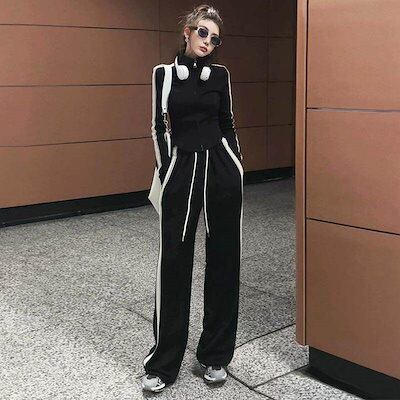 セットアップ 長袖 ジャケット ロングパンツ ジャージ スポーティー サイドライン バイカラー ゆったり ショート丈 スタイルアップ 楽ちん 大人 お姉さん レディース 華やか 大人可愛い 春 夏 S