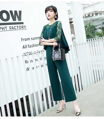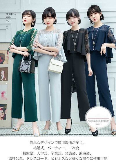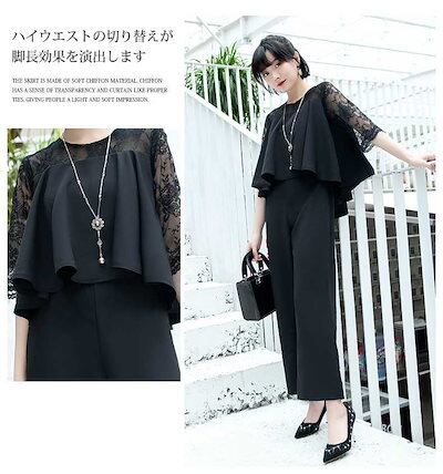 【TIME HOLDER】オールインワン テーパードパンツ 結婚式 ロングパンツ 袖あり ワイドパンツ レディース オールインワン パンツ パンツスーツ フォーマル 体系カバー 大きいサイズ パーティ