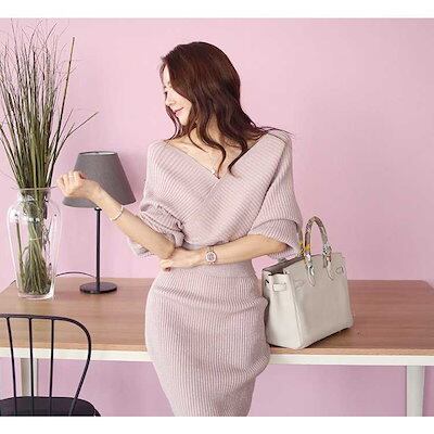 レディース 秋冬 ニットセットアップ ニットセットアップ ニットワンピースセットアップ通勤 きれいめ タイトスカート 長袖Vネックセーター セクシー オシャレ