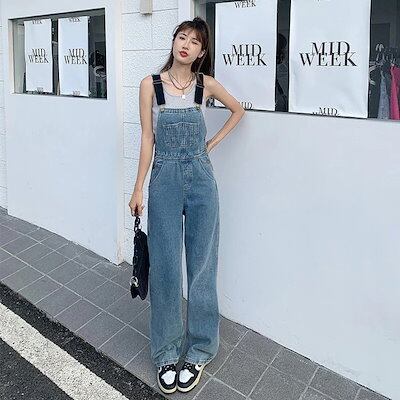 レトロ デニムパンツ レディース オーバーオール とても快適 ゆったり 着痩せ ストレー トパンツ オールインワン30%制限