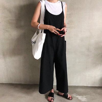 オールインワン 肩紐サロペット レディース ボトム オールインワ サロペット パンツ ワイド30%までに制限