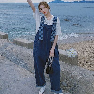 コーデ完成サロペット 時短コーデ イチオシオールインワン 韓国ファッション オーバーサイズ デニムサロペット レディー オールインワン デニム ワイトパンツ オーバーオール 福袋