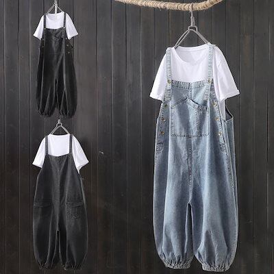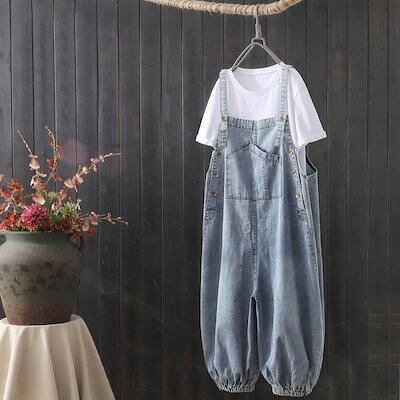 大きいサイズ デニム オーバーオール レディース 韓国ファッション ルーズ オールインワン ジーパン