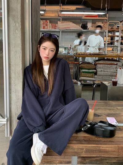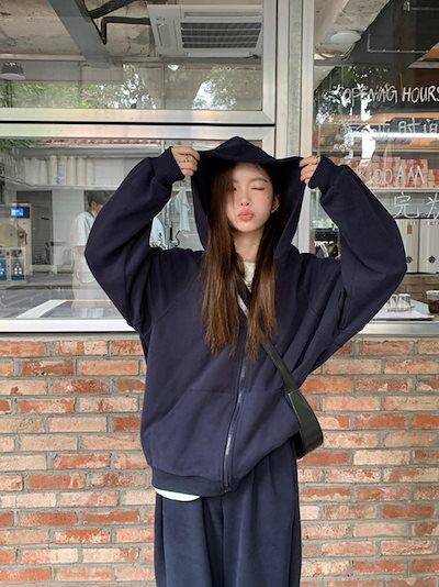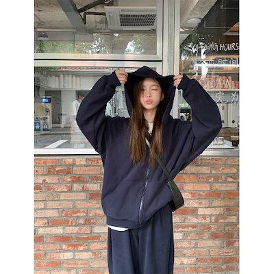 2024 秋冬 韓国 かわいい レディース 無地 フード付き長袖アウターレトロセット黑白フーディーブルサイズ丈トップス春カジュアルスポーツファッション系通学学生袖お出かけアップシルエットトラック