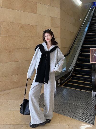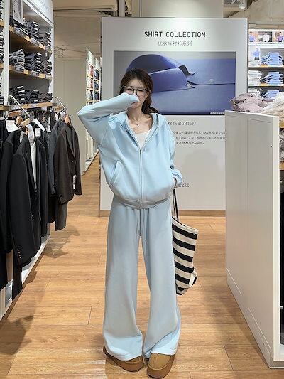 2024 秋冬 韓国 かわいい レディース 厚手裹起毛フード付き長袖アウターレトロセット黑白フーディーブルサイズ丈トップス春カジュアルスポーツファッション系通学学生袖お出かけアップシルエットトラック