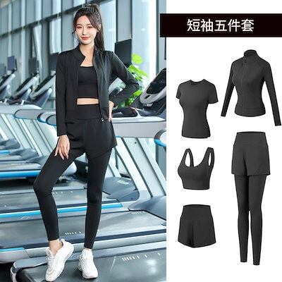 ファッションヨガウェア セットアップ ヨガトップス スポーツウェア 5点セット トレーニングウェア フィットネスウェア ラン レディース 上下セット 運動セット