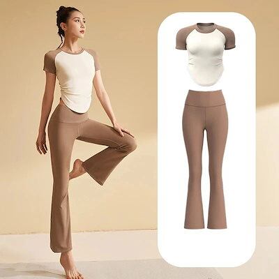 2点セット レディース トップス カップ付 ヨガパンツ ヨガウェア 大人気 セットアップ 上下セット ヨガウェアセットアップ スポーツブラ