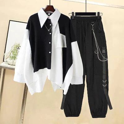 セットアップ 地雷系 男女兼用 韓 メンズファッション 長袖シャツ+パンツ スポーツウェア レディース 大きいサイズ 2点セットスウェット