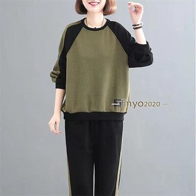 上下セット レディース セットアップ 配色 長袖 トレーナー ロングパンツ スウェットパンツ おしゃれ ボトムス カジュアル
