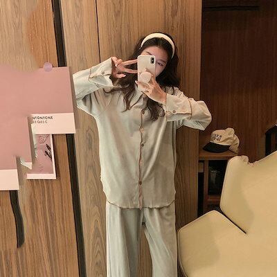 2024新作コーラルフリース パジャマ レディース 秋 韓国 シンプル 裏起毛 厚手 長袖 フランネル ホームウェア セット