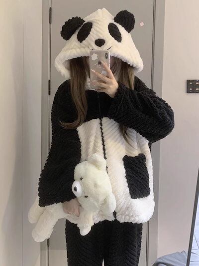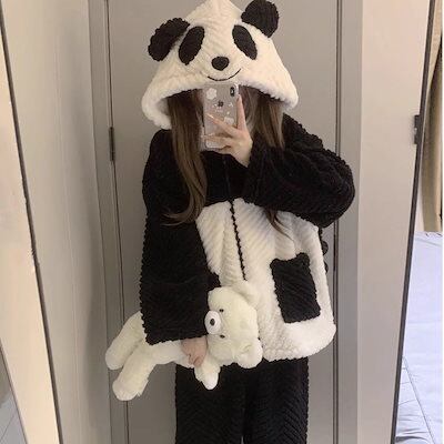 可愛い パンダ フランネルパジャマ レディース 秋冬 ふわふわ 可愛い着ぐるみパジャマ 二点セット 快適 コーラルフリース裹起毛 ルームウェア セットアップ韓国ファッション 部屋着