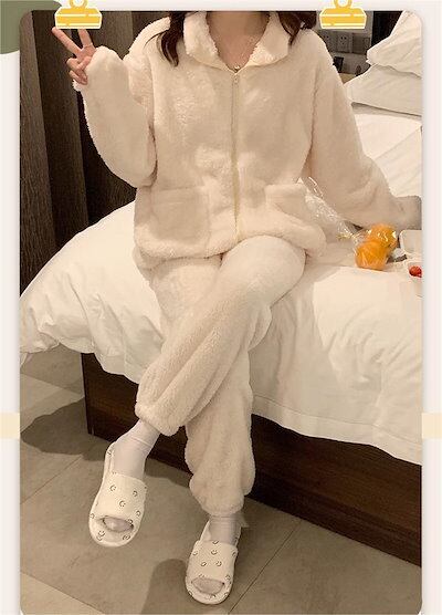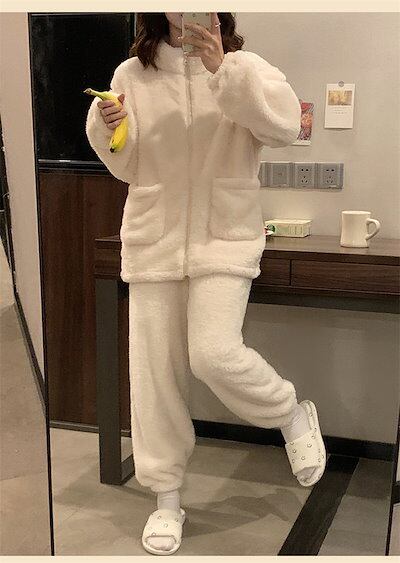 ルームウェア もこもこ パジャマ レディース 冬 着る毛布 フリース 上下セット 2点セット 長袖 前開き ハイネック ロングパンツ ふわふわ 暖かい 部屋着 ホームウェア 寝間着 ナイトウェ