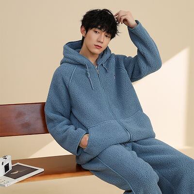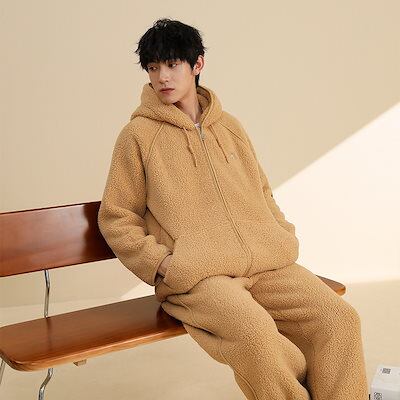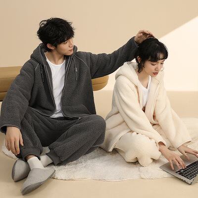 新作 秋冬 カップルパジャマ コーラルフリース パジャマ レディース 厚手 裹起毛 保温 ルー ムウェア セットアップ 日系 シンプル 快適 寝巻き 部屋着 メンズ パジャマ 外着