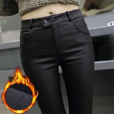 レザーパンツ レディース フェイクレザー ロングパンツ ハイウエスト 裏起毛パンツ スキニー レギンス PU 合皮 防風防寒 防水 お洒落 美脚