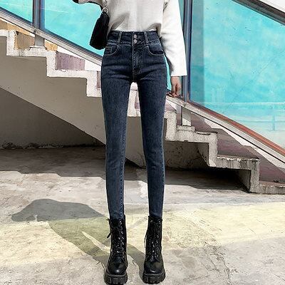 ハイウェストスキニーデニムパンツズボンストレート着やせレディースゆったりワイドジーンズWWKZ62