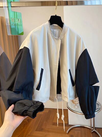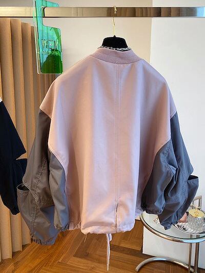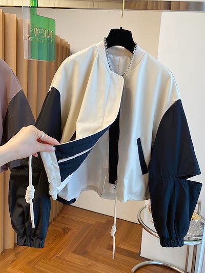韓国ファッション ニッチデザイン ゆったり 野球服 ショート パッチワーク ジャケット 秋 レディース トップス