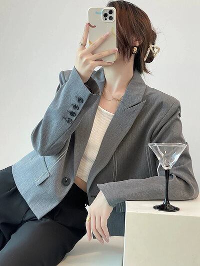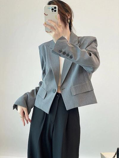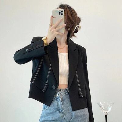 シンプル!ノーカラーコート春アウター春夏ブレザーショート丈上品トップスins風コンサバレディース韓国ファッション