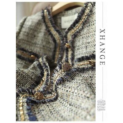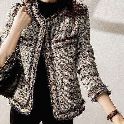 超人気フォーマルノーカラージャケット長袖アウターツイード上品ツイードコート秋レディース冬アウター羽織りオフィス通