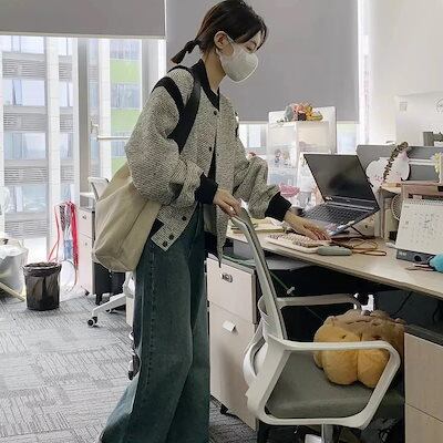 シンプル!ノーカラーコート春アウター通勤フレンチレトロコート春秋作ゆったり野球ウェアジャケットレディース韓国ファッション