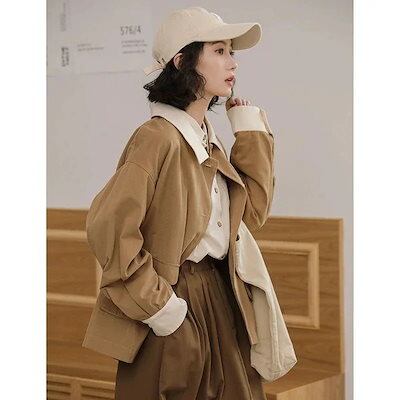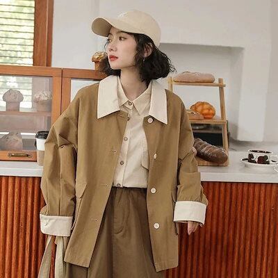 シンプル!ノーカラーコート春アウタージャケットエンジコート春と秋作トップスパーカーレディース韓国ファッション