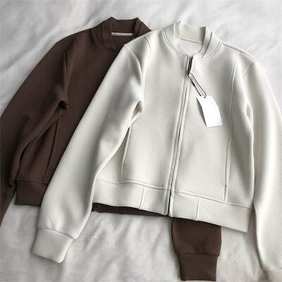 スタジャン レディース 秋 ブルゾン 春秋 アウター スウェット カーディガン トレーナー パーカー ジャケット トップス 秋 冬 レディース ライトコート 羽織り ダブル襟 スタンドカラー 大人 お