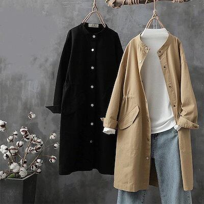 スタンドカラーコート スプリングコート レディース 春 ロングコート ライトブルゾン トップス 羽織 ノーカラー 大きいサイズ ライトアウター ゆったり