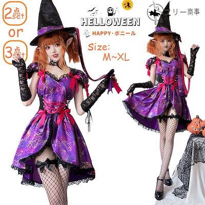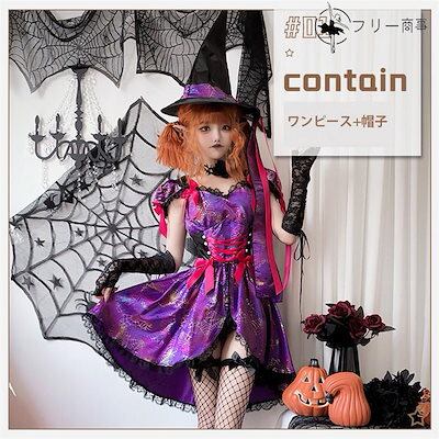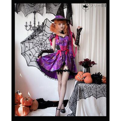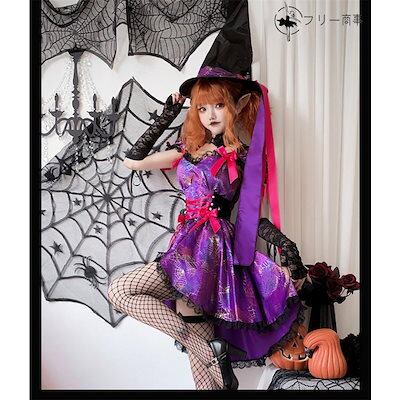 ハロウィン 衣装 コスプレ レディース ワンピース ユニーク 魔女 魔法使い 星柄 帽子 仮装 女の子 パープル コスプレ 魔法使い コスチューム 可愛い プリンセス