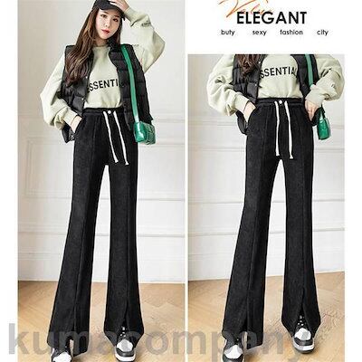ガウチョパンツ レディース ワイドパンツ ボトムス 暖かい 裏起毛 スリット 肌触り ウエストゴム ルームウェア 体型カバー 可愛い 美脚