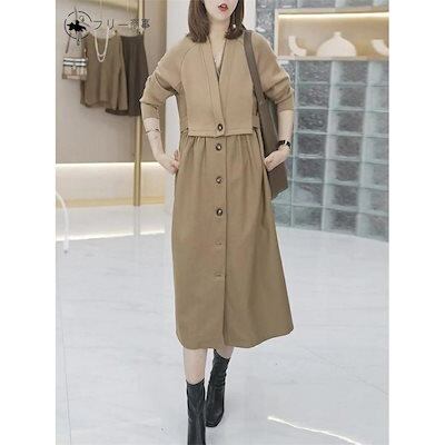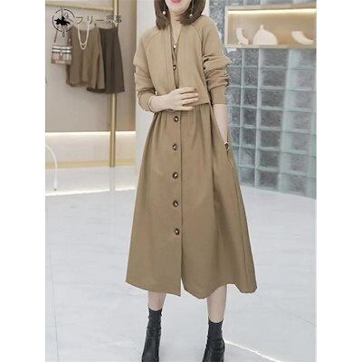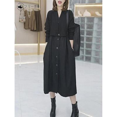 ワンピース 秋 切り替えワンピース レディース 前開き 長袖 ロングワンピース ゆったり ロング 膝下丈 ドレス 大人 きれいめ 体型カバー vネック 切り替え カジ