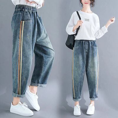 韓国ファッションジーンズロングパンツレディース ハイウエスト大きいサイズ服デニムパンツハーレムパンツ福袋