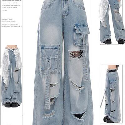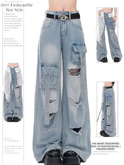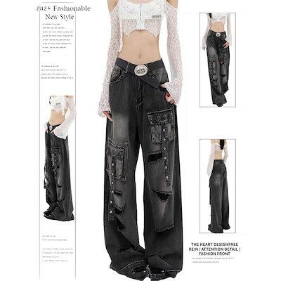24 デニムパンツ ボトムス ハイウエスト ジーンズ K-PP ファッション系韓国風スタイル ゆるダボウェア練習ジーンズ シルエットゆったり レディースカジュアル型メンズライク衣装
