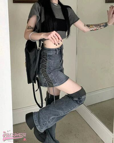 24 デニム スカート 2点セット デニム ハイウエスト ジーンズ カジュアル 美脚 脚長丈 レディース
