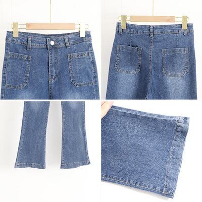 デニムパンツ レディース ジーンズ フレアデニムパンツ セミフレアパンツ韓国デニムパンツ
