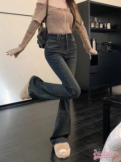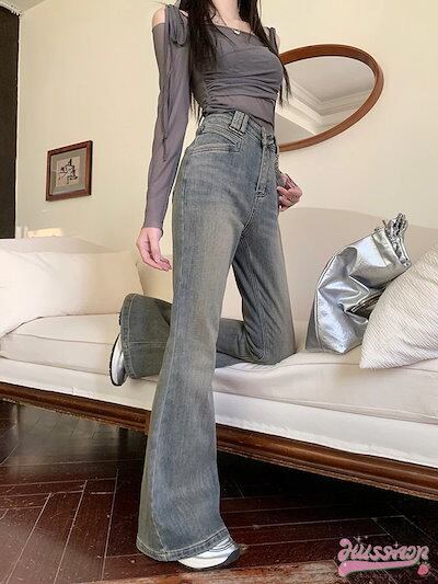 24 パンツ デニム ジーンズ スキニー ワイドレッグ ハイウエスト 脚長効果 美脚効果 細見え 水色 ライトブルー グレー カジュアル 韓国ファッション レディース お出かけ