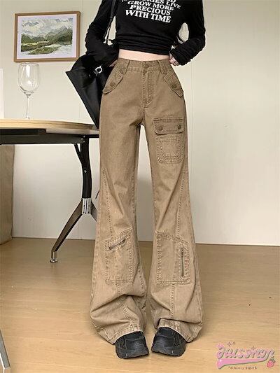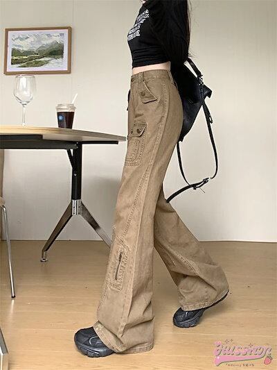 パンツ デニム ジーンズ ワイドレッグ ワイド ハイウエスト 脚長効果 美脚効果 細見え 茶色 ブラウン カジュアル 韓国ファッション レディース お出かけ