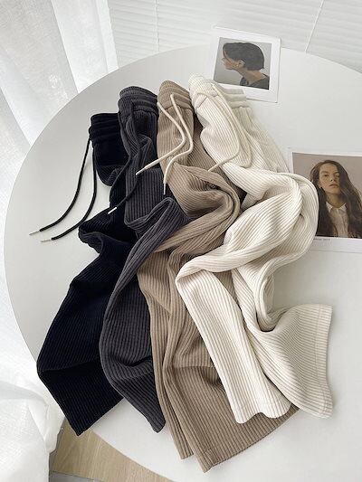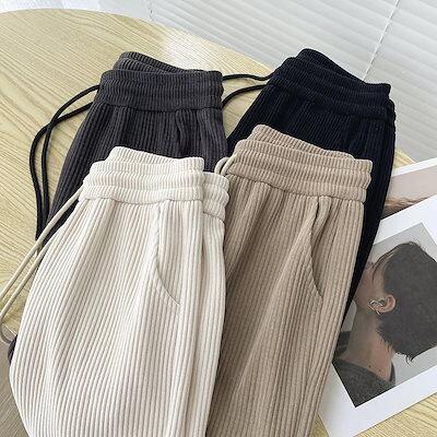 カジュアルパンツ 新作 美脚 グレー ワイドパンツ レディー ストレートシリンダ ハイウエスト 垂下感