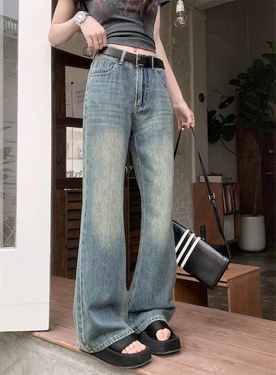 24パンツ デニム ジーンズ ワイド ストレート ハイウエスト 脚長効果 美脚効果 細見え ウォッシュ カジュアル おしゃれ かわいい 韓国ファッション レディース お出かけ