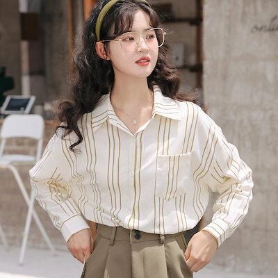 今っぽシアーシャツ 春と夏のゆったりストライプ長袖シャツレディースins新作トップス