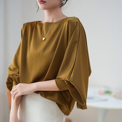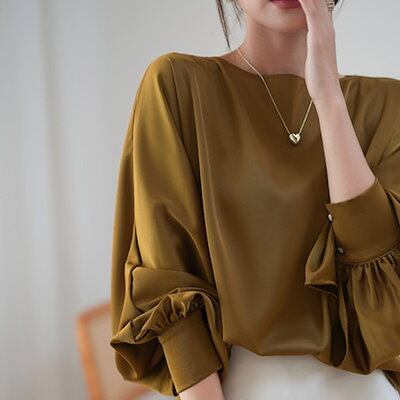 ブラウス 今っぽシアーシャツ レディースおしゃれ気質ファッショントップルーズラウンドネックソリッドカラー長袖シャツ