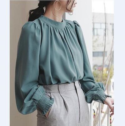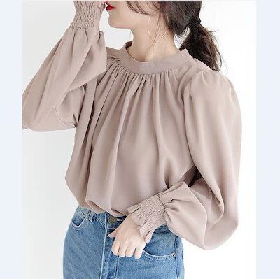ブラウス 今っぽシアーシャツ レディース 長袖 入学式 オケージョン オフィス ハイネック スタンドカラー リボン ハイネックバルーンスリーブ