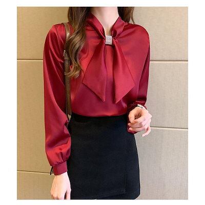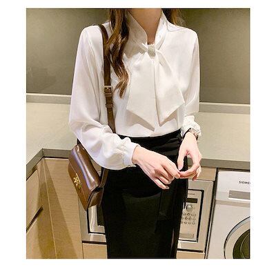 ブラウス レディース ビッグリボン 長袖 ボリュームスリーブ 綿混 ボウタイ おしゃれ きれいめ