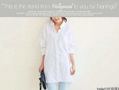 【急速出荷】シアーシャツ綿麻 トップス シャツ ゆったり ワンピーっす 韓国ファッション ロング丈ブラウス