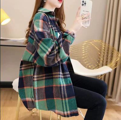 今っぽシアーシャツ 2024年春新作ゆったりフランネルチェック 長袖ブラウスカジュアル 韓国 ブラウス レディースファッション カーディガン オフィス シャツ