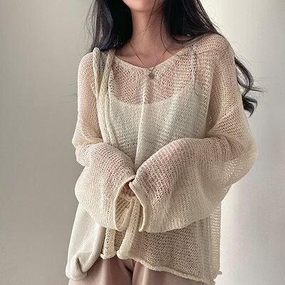 今っぽシアーシャツ レディースシャツ 春秋の新作 韓国ファッション chic フランス 復古 ゆとりがある 長袖 薄手ニット 日焼け止めカバー