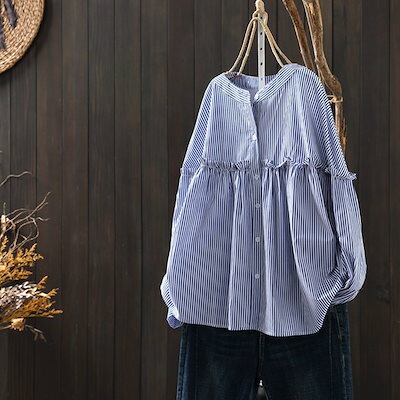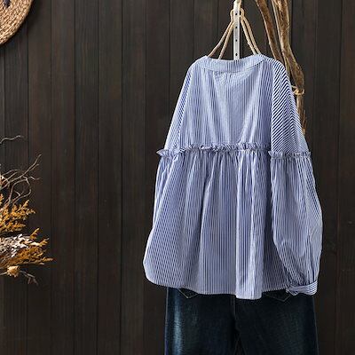 韓国ファッション ブルーストライプの純綿シャツ女性長袖春服新着痩せトップス 長袖 ブラウス レディース シャツ 今っぽシアーシャツ