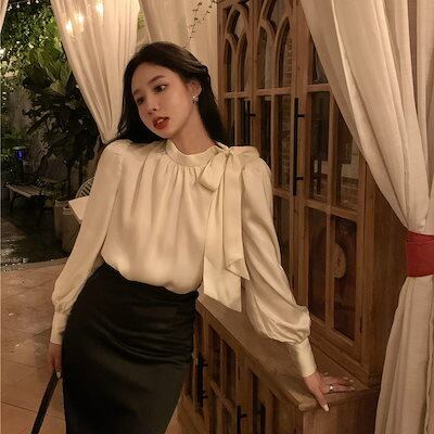 ブラウス 春夏 レディース 2024 新作 蝶結び 長袖 シャツ ブラウス トップス