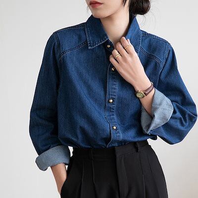 【最安値に挑戦】韓国 ブラウス レディース 今っぽシアーシャツ 長袖 ブルーデニムシャツジャケット女性2024春と秋のトップス潮 ファッション オフィス カーディガン