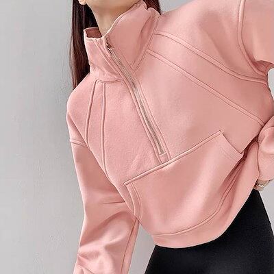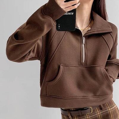 プルオーバー パーカー 長袖 フェミニン ストリート レディース ポケットハーフジップ フード付き 大人可愛い きれいめ シンプル カジュアル レトロ ラフ メンズライク マニッシュ ボーイッシュ ス