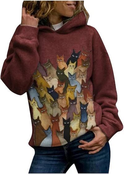 パーカー トレーナー メンズ レディース ねこ柄 可愛い カラフル 長袖 フード付き カジュアル シンプル ハンサム 丈長め ビッグシルエット 丸襟 体型パカー トップス プルオーバー 柔らかい オシ
