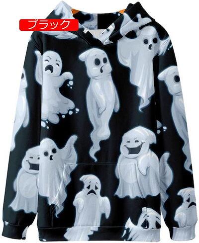 メンズ レディース 長袖 スウェットパーカー 幽霊柄 ペアルック 綿 フード付き ソフト オーバーサイズ ストレッチ 保温 吸汗 丈長め カジュアル カッコイイ ファッション 春秋服 体型パカー プル